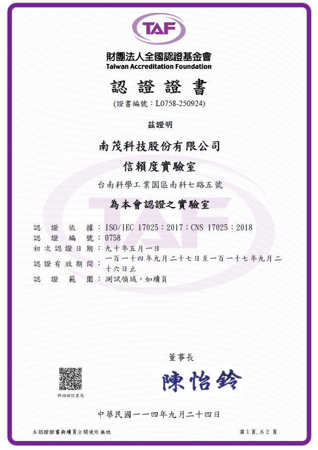 ISO 17025 Certified(Chemical Analysis Lab.) - Tainan Plant